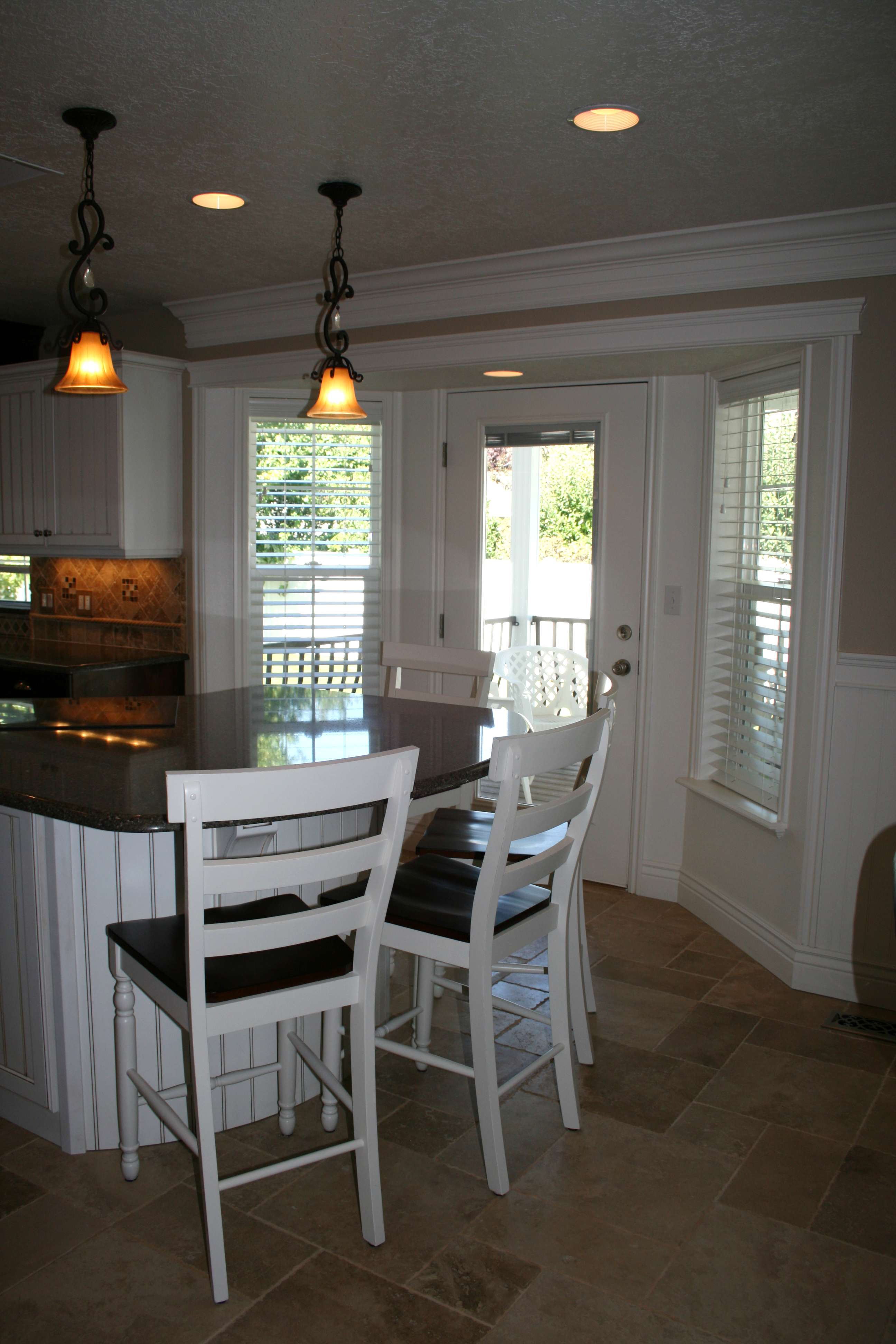 Existing Cabinetry, Granite Countertop, Travertine Flooring